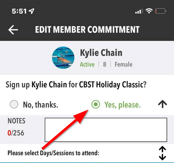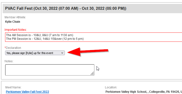 SAL meets are different than invitational meets in that the coaches decide which events your swimmer will participate in, as such you must only declare that you are attending or not attending.
