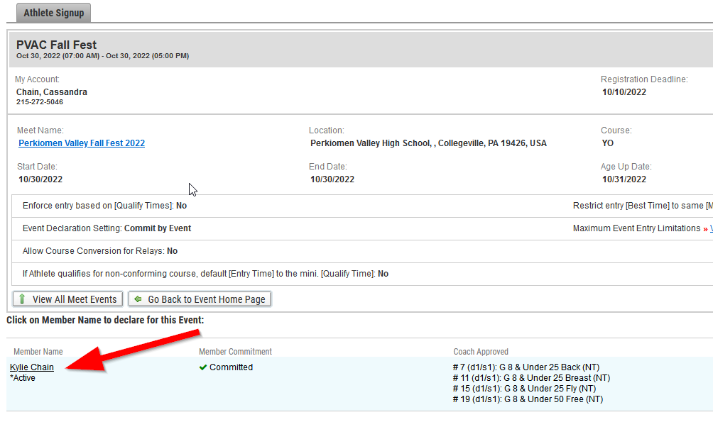 Invitational meets require you to select which events your swimmer is going to participate in. If you do not select events then when you arrive at the meet your swimmer will not be able to particpate in anything!